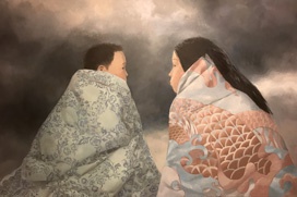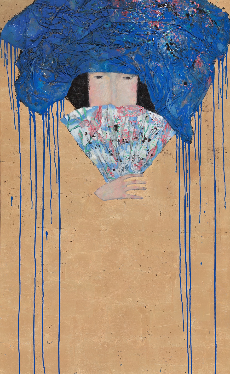2018, 壓克力彩、炭筆、箔、畫布, 100×90 cm