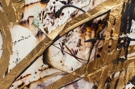 2019, 壓克力彩、手工紙拼貼、墨水筆跡、金箔、畫布, 120x180 cm