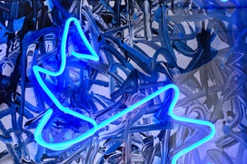 2019, 壓克力彩、霓虹燈管、畫布、壓克力玻璃裝裱, 101x121x11 cm