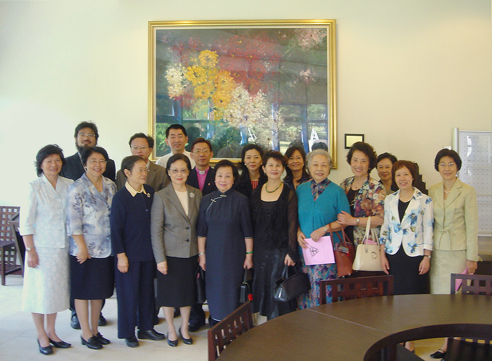 衛理女中贈畫儀式, 辜嚴倬雲女士 (左五)、創辦人葉貴美 (左六)