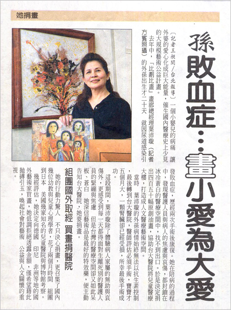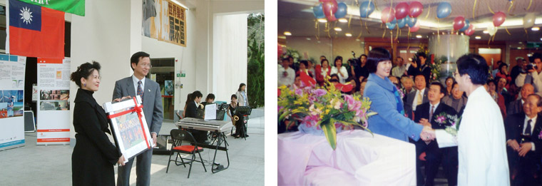 圖右: 仁愛醫院贈畫儀式, 創辦人葉貴美 (左一)