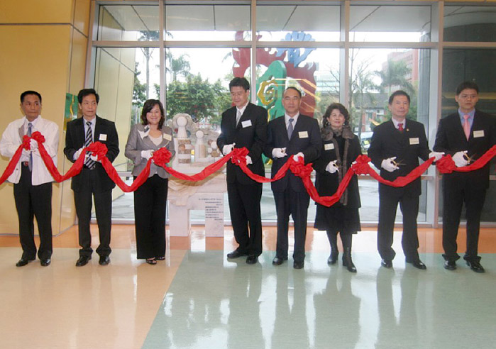 執行總監戴可君、前印尼駐台代表蘇哈鐸諾及創辦人葉貴美 女士,攝於台大醫院捐贈開幕Mr. Suhartono