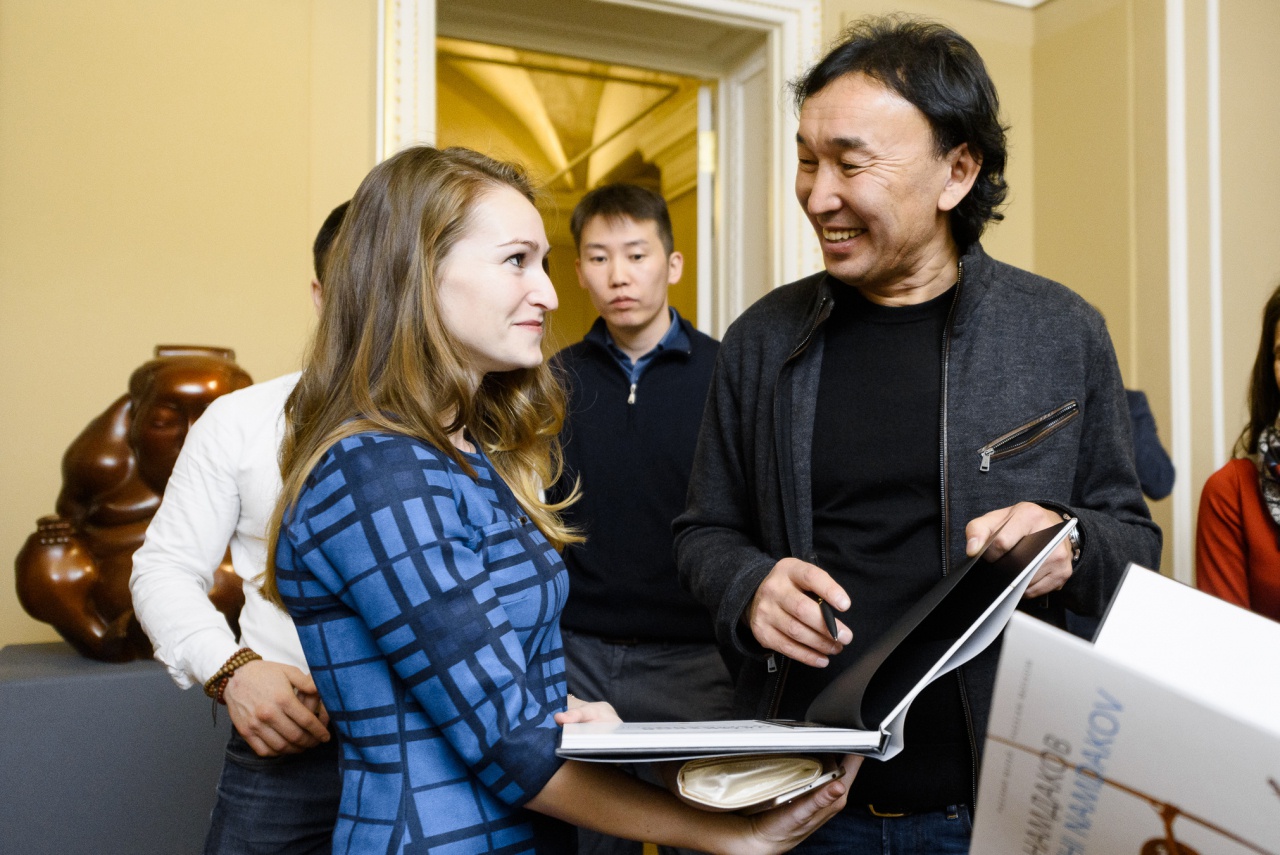 貝格洛夫先生致詞時提及:「達西.那姆達科夫的藝術深入主題,多元、充滿幻想,令人驚嘆著迷。他的作品融合了布里亞特國家色彩,亞洲和歐洲藝術,如同聖彼得堡連接了不同國家的文化。」 這次展覽共展出了六十三件雕塑、繪畫和珠寶作品 ,以及遠從伊爾庫茨克地區V.P.Sukacheva藝術博物館借展的重要收藏。