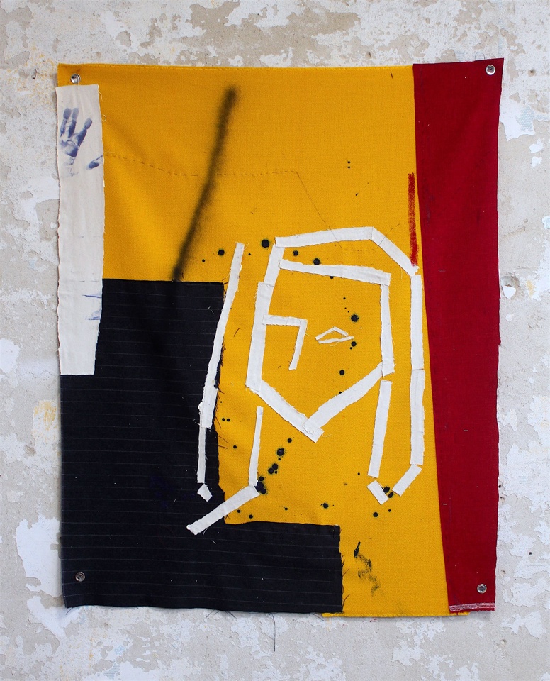 2019 mixed media collage, oil, spray, oil stick and sewing, 210x155 cm